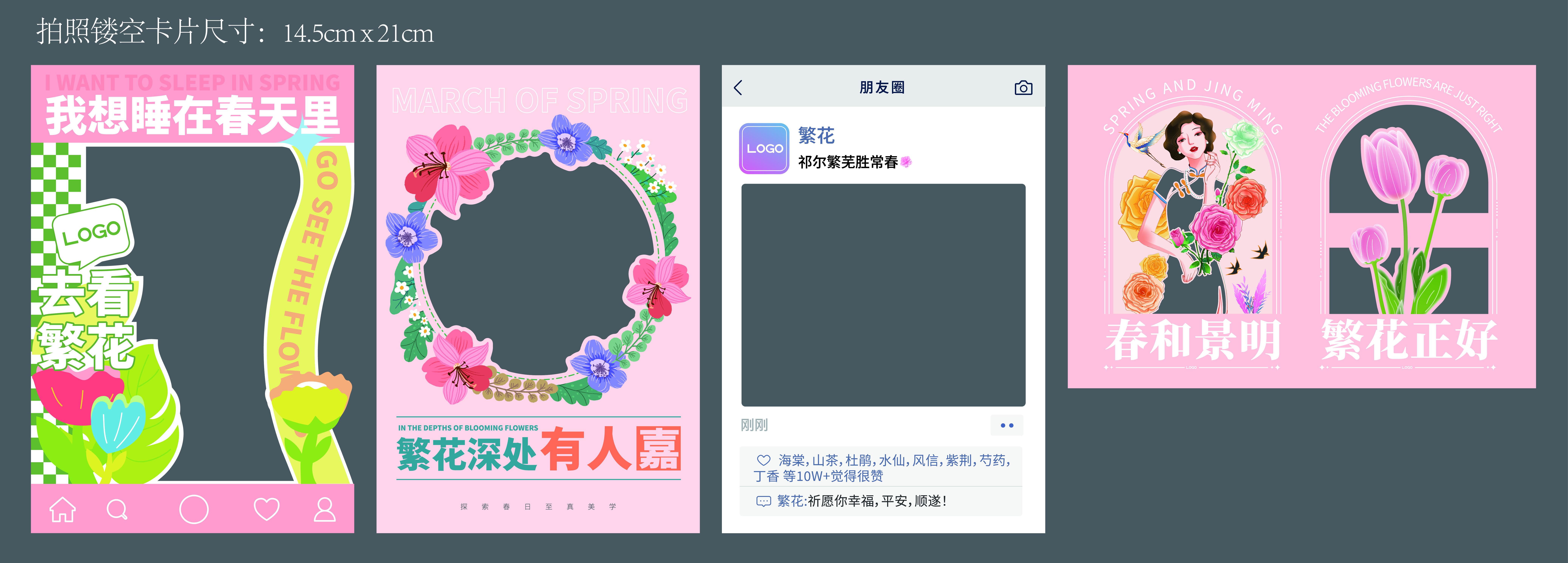 春季镂空打卡卡片